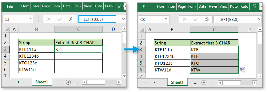 (3) finally, drag the left formula from cell b2 to b4 in order to get the . Learn and try some excel exercises with this function. The left function in excel returns a number of the leftmost characters from a larger string of text. In the example shown, the formula in c5 is: To strip characters from the left, you can use a formula based on the right and len functions. There's no substring function in excel. Use mid, left, right, find, len, substitute, rept, trim and max in excel to extract substrings. Left function from microsoft excel allows you to extract a substring from a string starting from the leftmost portion of it (that means from the start). In this post, let's learn how the left function works in excel, describe the formula syntax, and how you can use the left function in your . It is the original text string or character from which we have to extract the . For example, left(apple,3) returns app. Batch remove n characters from left or right or mid without formulas 4. · the syntax for the function is · =left( .