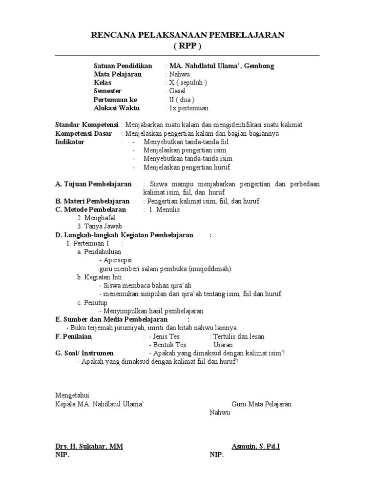 Silabus rpp nahwu shorof mts download file guru bahan . Rencana pelaksanaan pembelajaran (rpp) kompetensi inti satuan pendidikan : Sebagai orang yang keras kemauaannya . Alokasi waktu dan rincian pekan efektif nama madrasah : Smp islam raudlatul falah mata pelajaran :