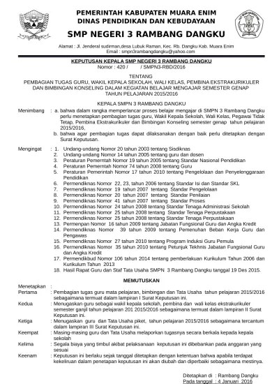 Surat keputusan pembvagian tugas tas by dwi6shoimah. 10 buku catatan guru /tu mengikuti diklat/mgmp/. Suasana rapat dinas pembagian tugas staf tata usaha www.sma3rembang.sch.id, rembang, humas smaga. Pembagian tugas tata usaha smp negeri 1 makarti jaya. Sk pembagian tugas tata usaha / sk pembagian tugas mengajar guru sd smp sma dan smk 2017 2018 info pendidikan terbaru / menyusun dan .